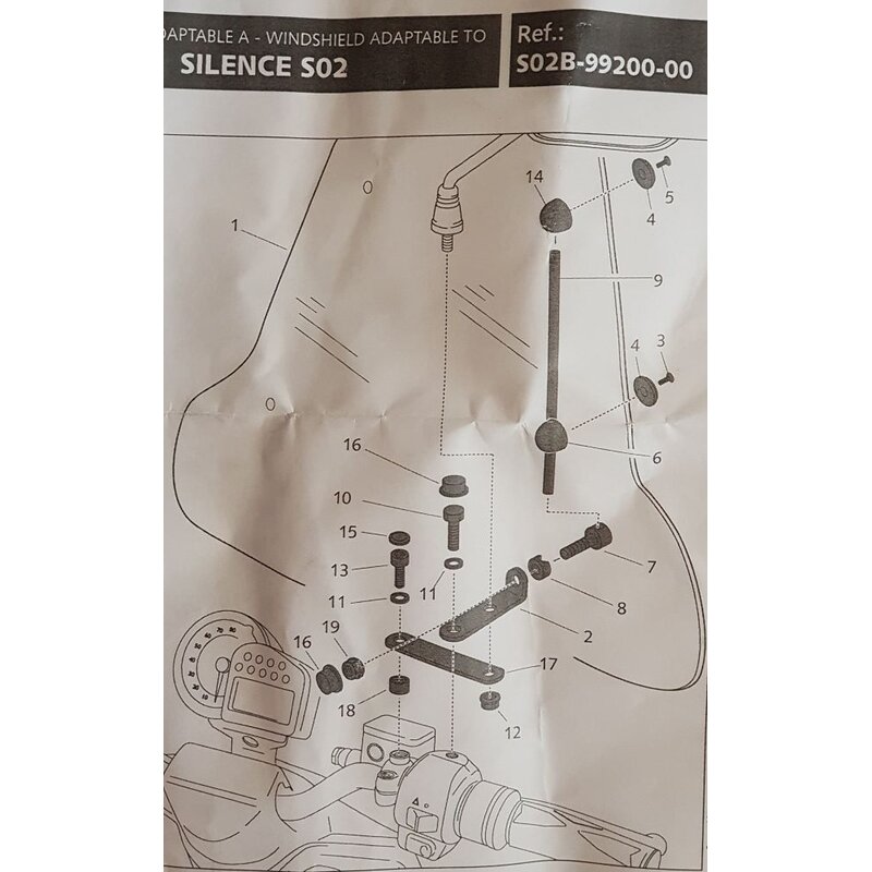 S02B-99200-00/ Montagematerial für S02 Windschild neu, ohne Windschild (nur komplettes Montagematerial)
